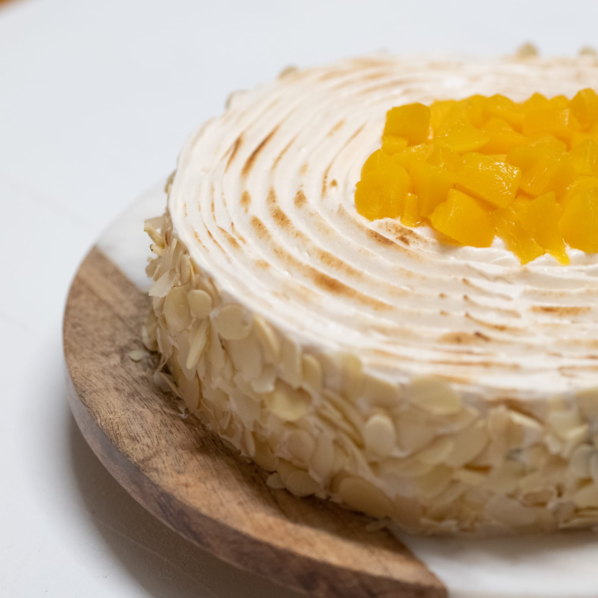 Ce délicieux gâteau se compose d’une génoise légère, d’une crème mousseline onctueuse, d’un sirop d’imbibage parfumé et d’une meringue italienne légèrement dorée. Le tout est couronné de succulents morceaux de pêches. Voici les ingrédients nécessaires :